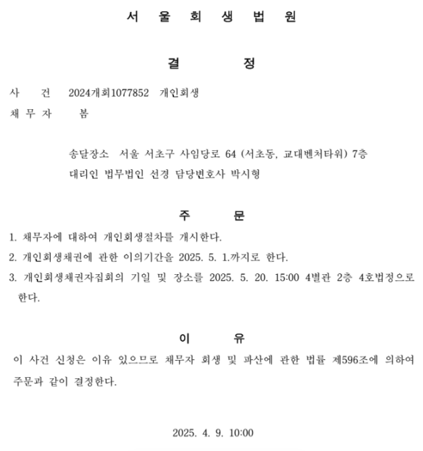 개인회생 개시결정