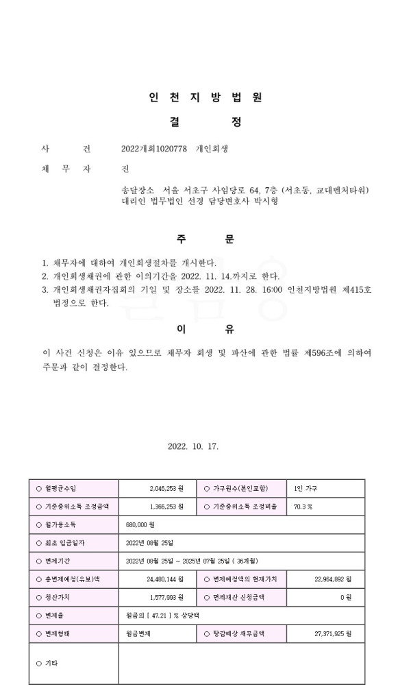 개인회생 개시결정