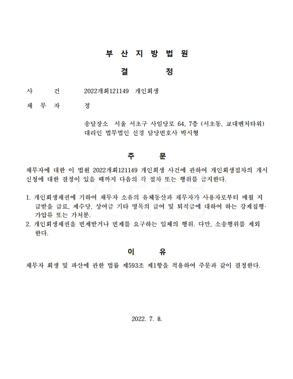 개인회생 금지결정