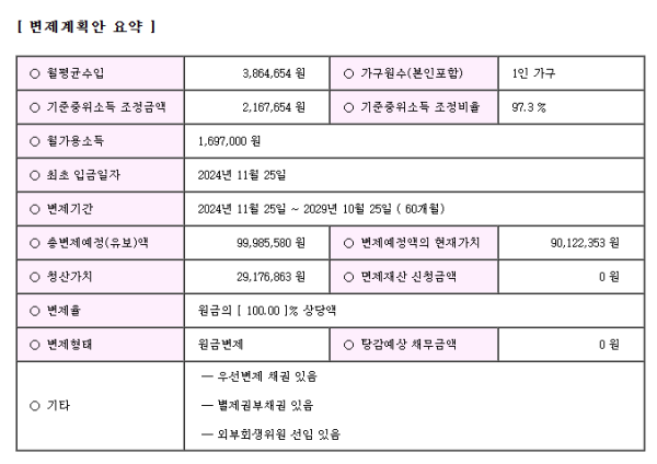 변제율 원금의 100.00%
