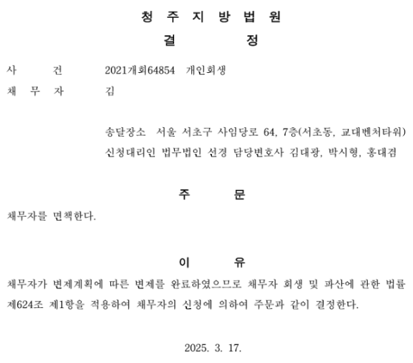 개인회생 면책결정
