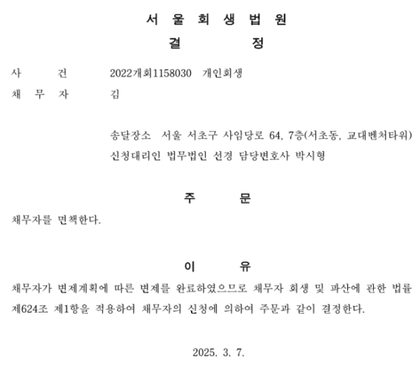 개인회생 면책결정