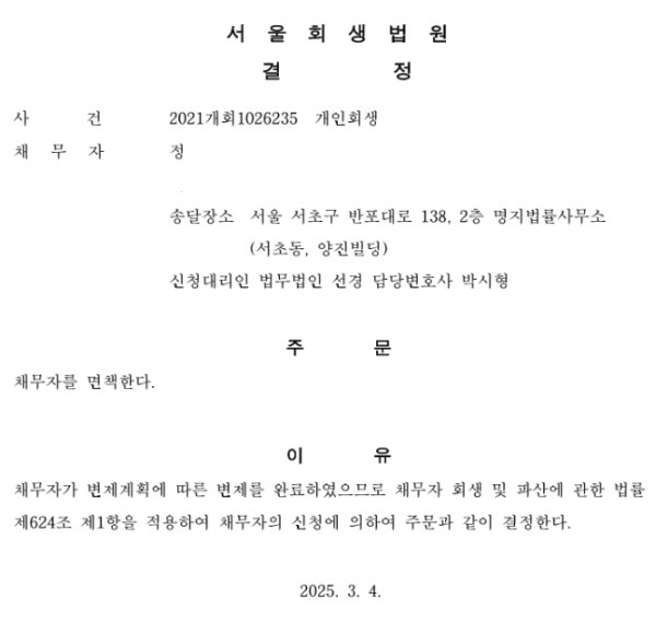 개인회생 면책결정
