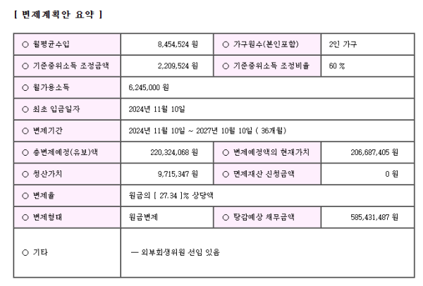 개인회생신청사건의 개시결정문