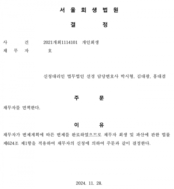 개인회생 면책결정