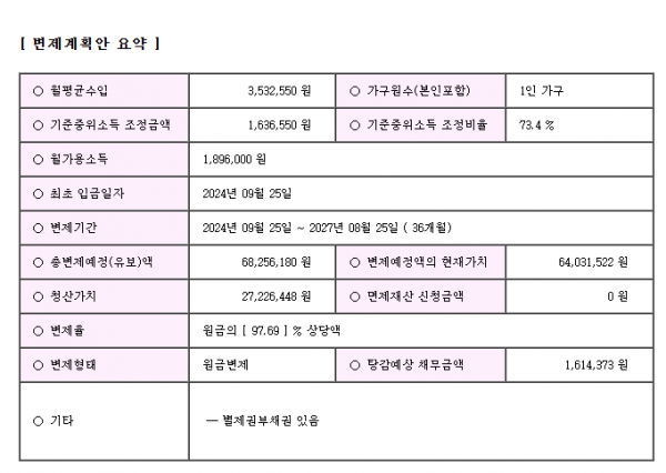 변제율 원금의 97.69%