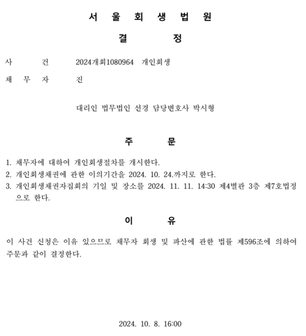 개인회생 개시결정