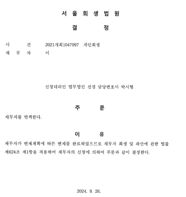 개인회생 면책결정
