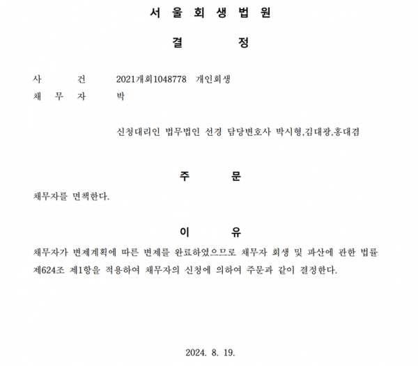 개인회생 면책결정