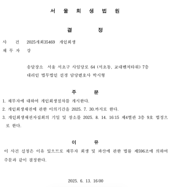 개인회생 개시결정
