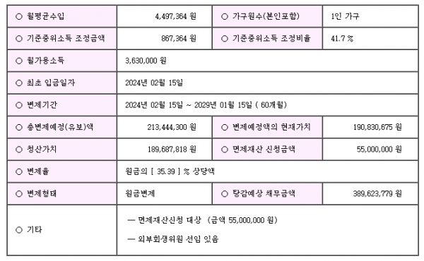 개인회생신청사건의 개시결정문