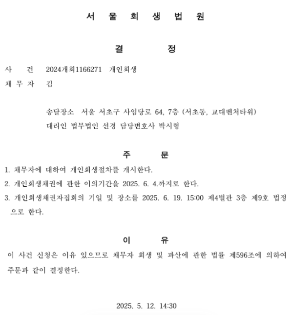 개인회생 개시결정