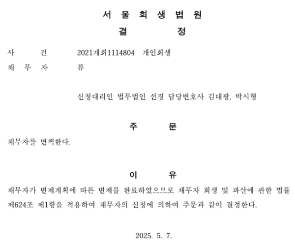 개인회생 면책결정
