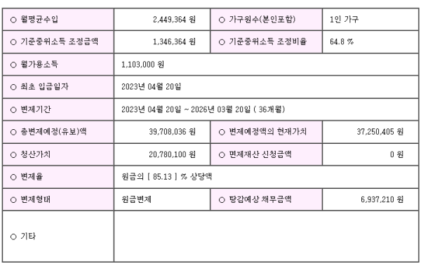 변제율 원금 85.13%