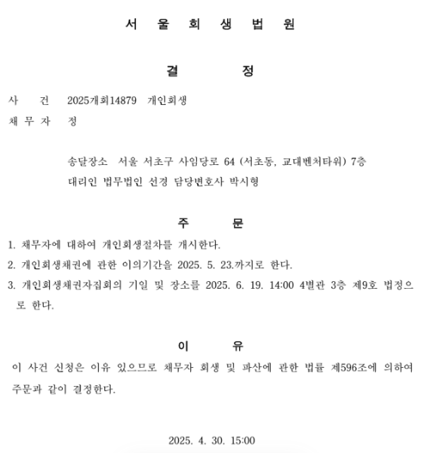 개인회생 개시결정
