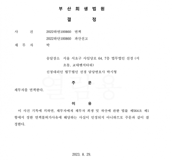 개인파산 면책결정