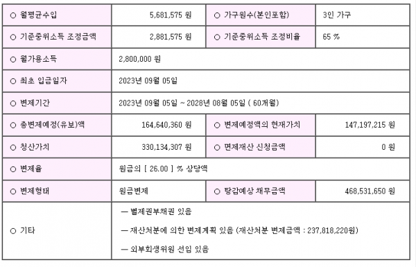 개인회생신청사건의 개시결정문