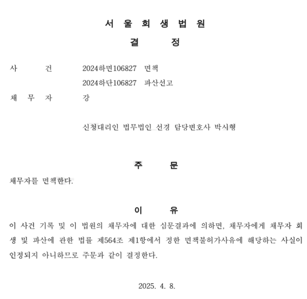 개인파산 면책결정