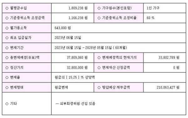 변제율 원금 15.25%