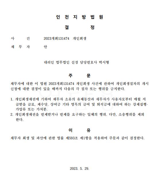 개인회생 금지결정
