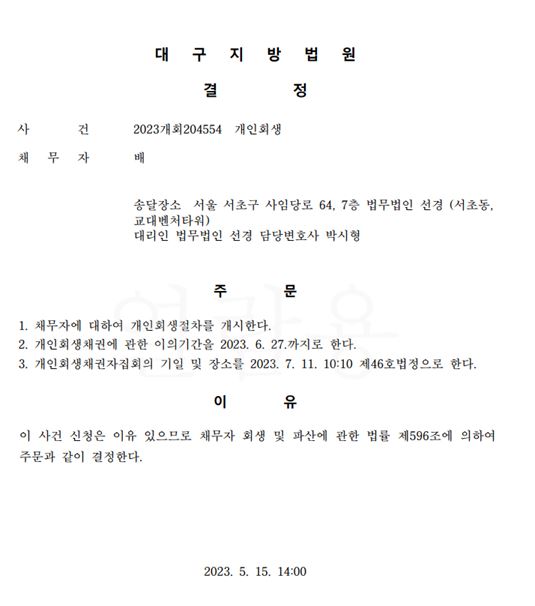 개인회생 개시결정