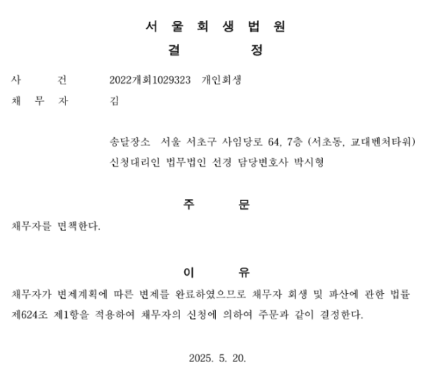 개인회생 면책결정