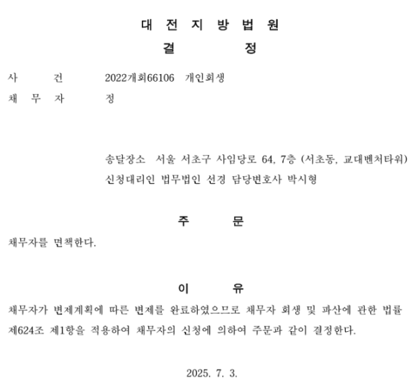 개인회생 면책결정